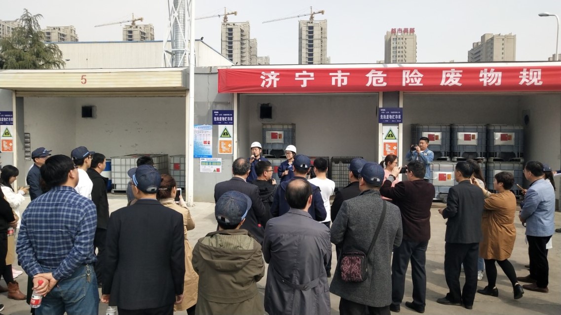 2019年3月27日,濟(jì)寧市生態(tài)環(huán)境局主辦的濟(jì)寧市危險(xiǎn)廢物規(guī)范化管理現(xiàn)場(chǎng)會(huì),在我司舉行。來(lái)自全市14縣市區(qū)生態(tài)環(huán)境局分管局長(zhǎng)、科長(zhǎng)及市生態(tài)環(huán)境局領(lǐng)導(dǎo)共計(jì)50余人,參加了本次現(xiàn)場(chǎng)會(huì),F(xiàn)場(chǎng)會(huì)主要針對(duì)危險(xiǎn)廢物規(guī)范化管理、危險(xiǎn)廢物大數(shù)據(jù)信息平臺(tái)應(yīng)用等方面進(jìn)行交流與學(xué)習(xí),F(xiàn)場(chǎng)會(huì)中,我司伊藤總經(jīng)理致歡迎詞,并對(duì)我司環(huán)保工作進(jìn)行介紹。會(huì)后我司制造部張部長(zhǎng)接收濟(jì)寧電視臺(tái)記者采訪(fǎng)。我司環(huán)保得到與會(huì)生態(tài)環(huán)境局領(lǐng)導(dǎo)的好評(píng)。